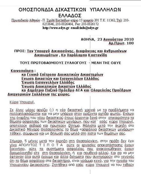 δικαστικών υπάλληλων στον Υπουργό Δικαιοσύνης και με το οποιο