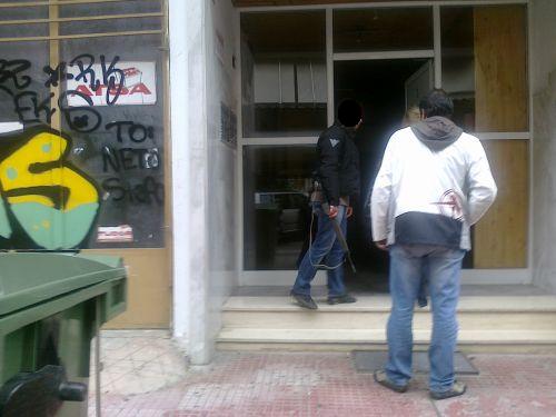 Μέσα στις πυλωτές, τα γκαράζ και τα διαμερίσματα των γύρω πολυκατοικιών οι αστυνομικοί οπλισμένοι σαν αστακοί έψαχναν τους 2 ληστές, που άρπαξαν 5.000 € από την Εθνική.